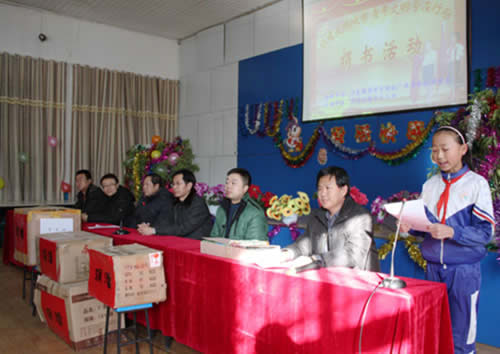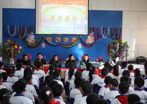 2010年12月27日上午,寧夏國芳百貨購物廣場(chǎng)有限公司團(tuán)委志愿者,在公司黨委書記陳志剛和團(tuán)委書記張勇的帶領(lǐng)下來到興慶區(qū)第十二小學(xué)開展了以“創(chuàng)建文明城市 青年文明號(hào)在行動(dòng)”為主題,為學(xué)校農(nóng)民工子弟捐贈(zèng)圖書和學(xué)習(xí)用品的公益活動(dòng)。參加這次活動(dòng)除了國芳百貨團(tuán)委的志愿者之外,還有銀川市商務(wù)局團(tuán)委書記劉志勇 ,以及興慶區(qū)教育局胡峰局長(zhǎng)共同參加并發(fā)表講話,表示感謝國芳百貨對(duì)本地教育事業(yè)的關(guān)心和幫助,在城市中農(nóng)民工子女是更應(yīng)該得到我們大多數(shù)人的關(guān)心和愛護(hù),國芳百貨負(fù)責(zé)人表示,像此類非常有社會(huì)效益的公益活動(dòng)今后將繼續(xù)進(jìn)行下去。