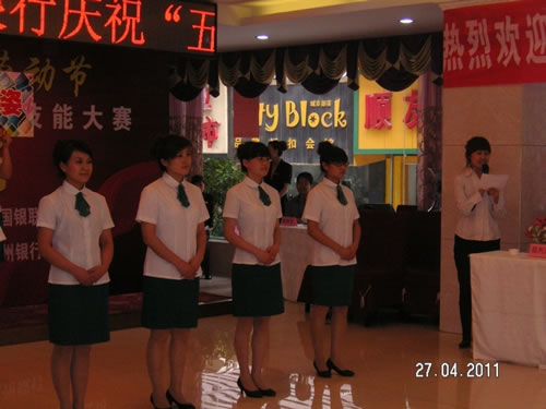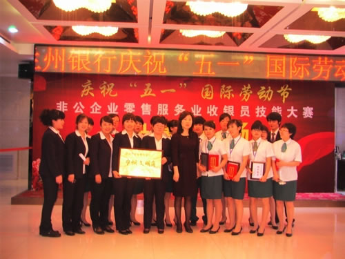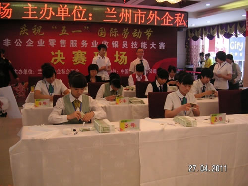 由蘭州市總工會(huì)主辦的“非公企業(yè)零售服務(wù)業(yè)收銀員技能比賽” 于2011年4月27日下午,在人民飯店落下帷幕。參加比賽的選手都是來自各公司和企業(yè)的業(yè)務(wù)尖兵,現(xiàn)場壓力重生,但是能和高手同臺(tái)競技是挑戰(zhàn),也是幸運(yùn),大家都為榮譽(yù)而奮斗。比賽經(jīng)過單指單張、多指多張、機(jī)器點(diǎn)鈔、銀行卡刷卡、即問即答、工裝展示環(huán)節(jié)近四個(gè)小時(shí)的比拼。最終國芳百貨收銀部取得了驕人的成績,團(tuán)隊(duì)授予“巾幗文明崗”,參賽的12名選手在單項(xiàng)成績中,兩人榮獲得一等獎(jiǎng)、四人榮獲二等獎(jiǎng)、四人榮獲三等獎(jiǎng)、兩人榮獲優(yōu)秀獎(jiǎng)。