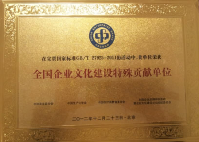 2012年度“全國企業(yè)文化建設(shè)特殊貢獻(xiàn)單位”榮譽(yù)證書