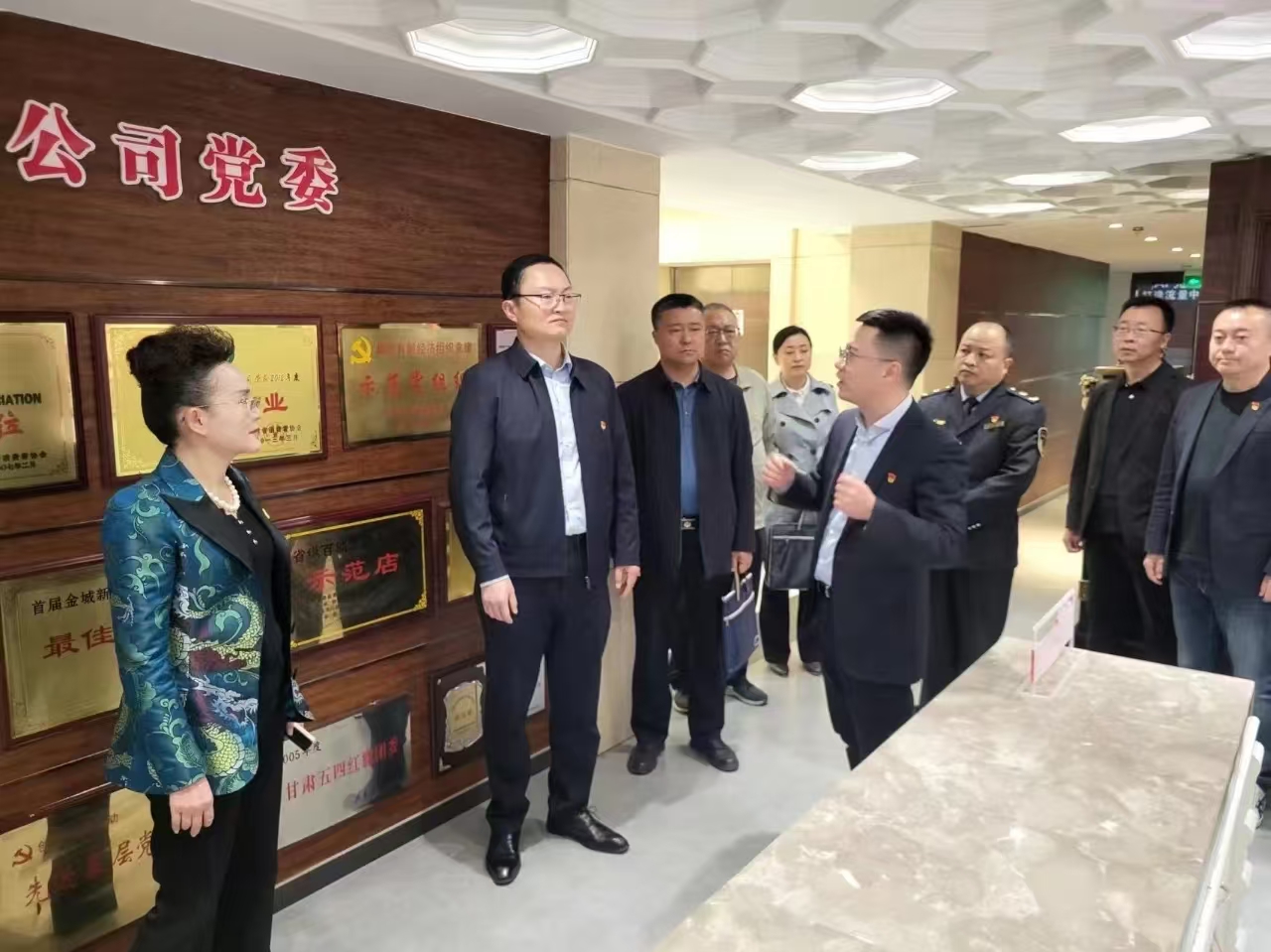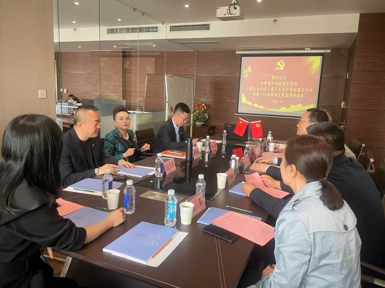 2024年4月26日,甘肅省市場監(jiān)督管理局小微企業(yè)個(gè)體工商戶專業(yè)市場黨建工作處侯巍處長與省、市、區(qū)、街道四級市場監(jiān)管局非公有制經(jīng)濟(jì)黨建處室相關(guān)負(fù)責(zé)人一行蒞臨國芳集團(tuán)黨委進(jìn)行調(diào)研指導(dǎo)并座談交流。